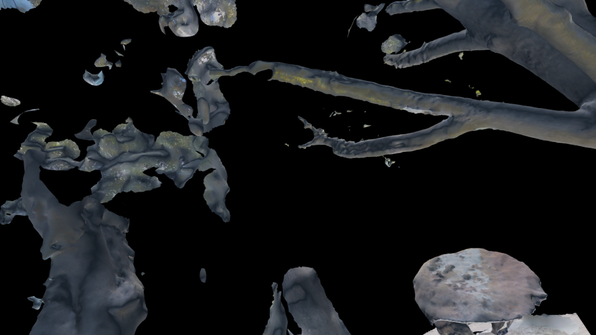 Additionally, we intentionally left some of the imperfections and artefacts from the photogrammetry capture process in the final experience. These small inconsistencies—floating fragments, uneven surfaces, and irregular edges—served as visual markers of the original scanning method, reinforcing the contrast between real-world documentation and algorithmically generated environments.
